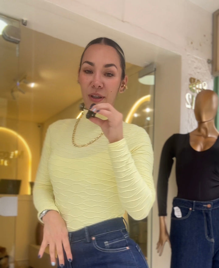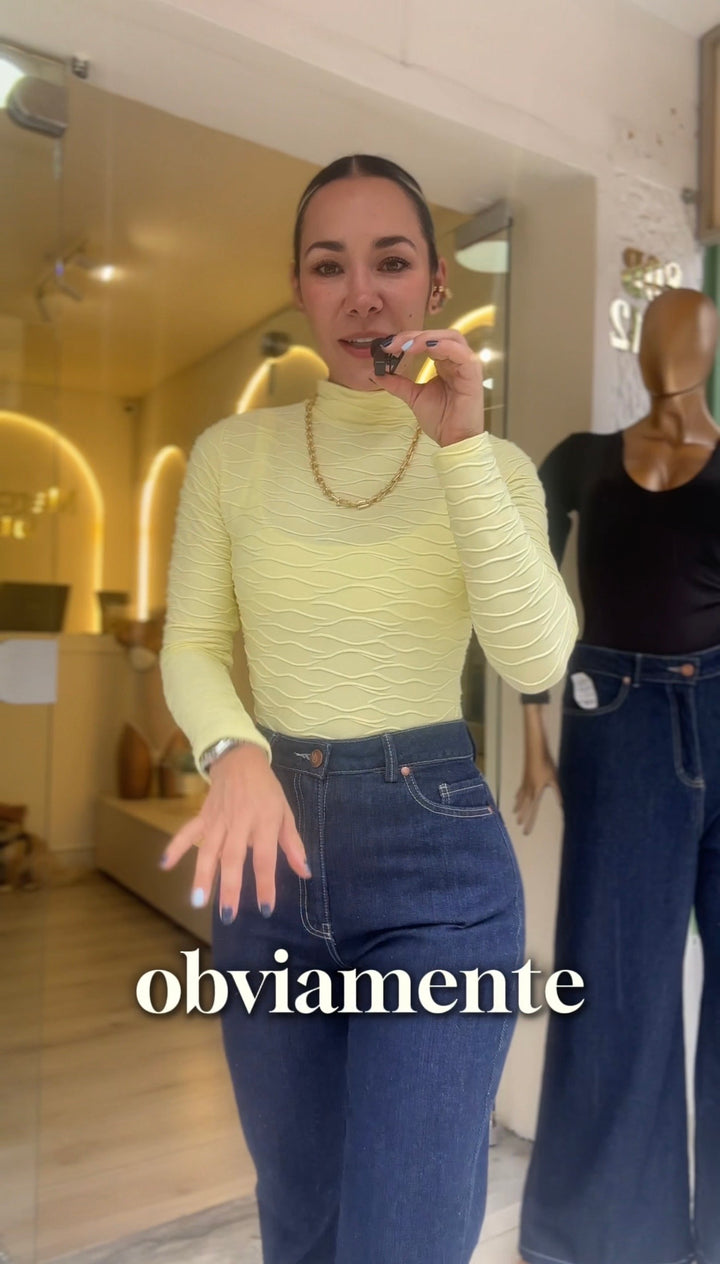 Esta blusa de manga larga con cuello tortuga ha sido confeccionado con tela en Nylon textirizado, brindando una sensación de firmeza con sus delicadas lineas y un acabado impecable que realza la silueta.