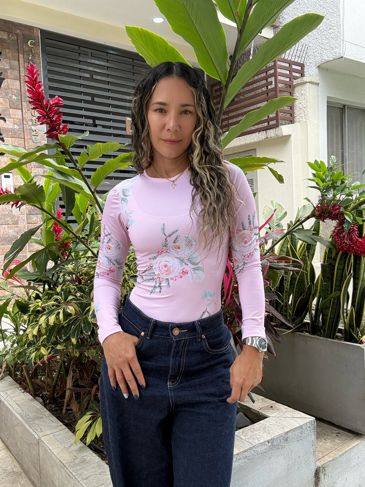 Este body de manga larga con cuello redondo ha sido confeccionado con tela en poliester reciclado de botellas pet y biodegradable, brindando una sensación de firmeza y un acabado impecable que realza la silueta. Haz parte del cambio 🌎