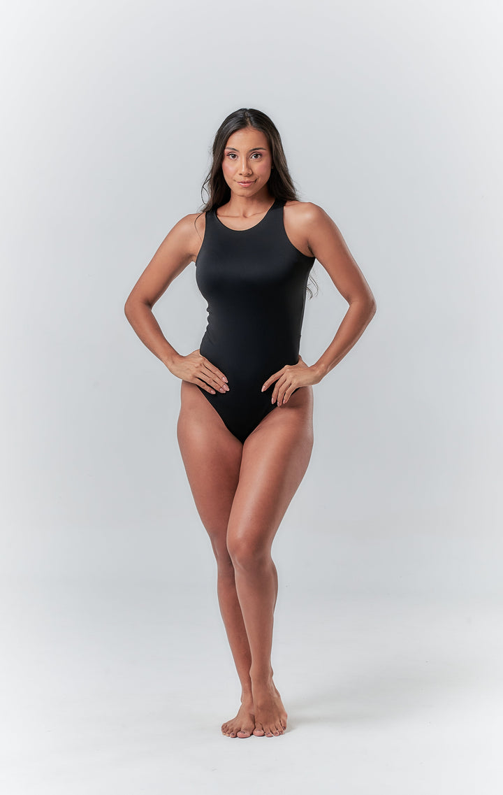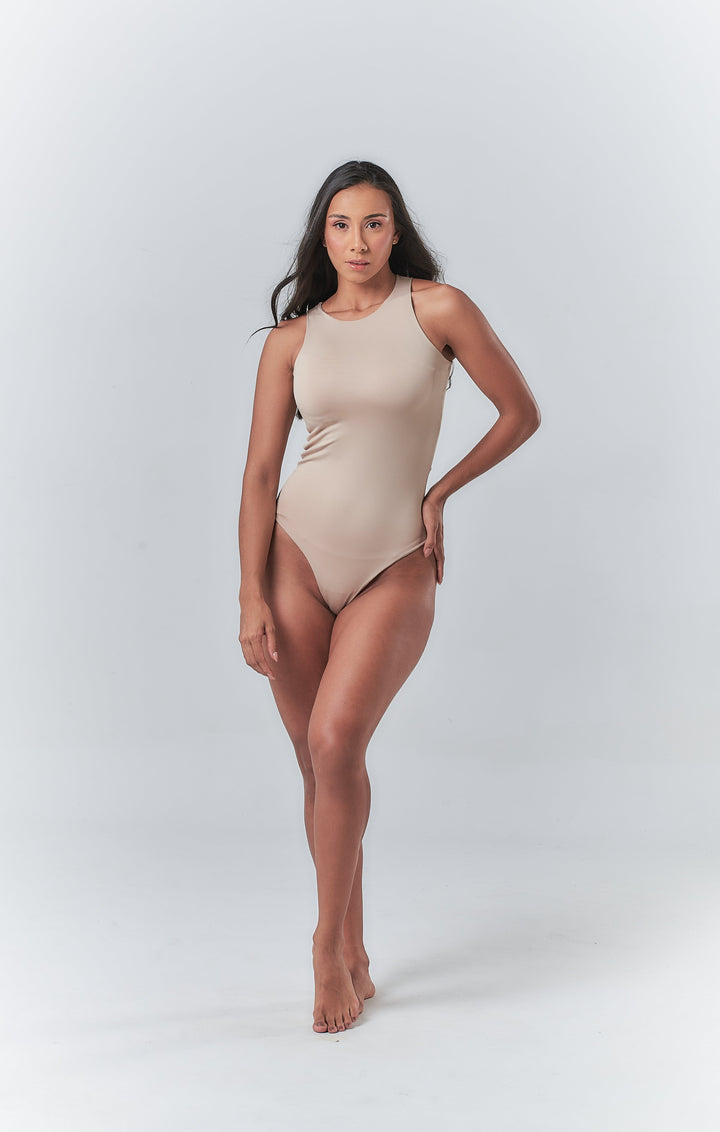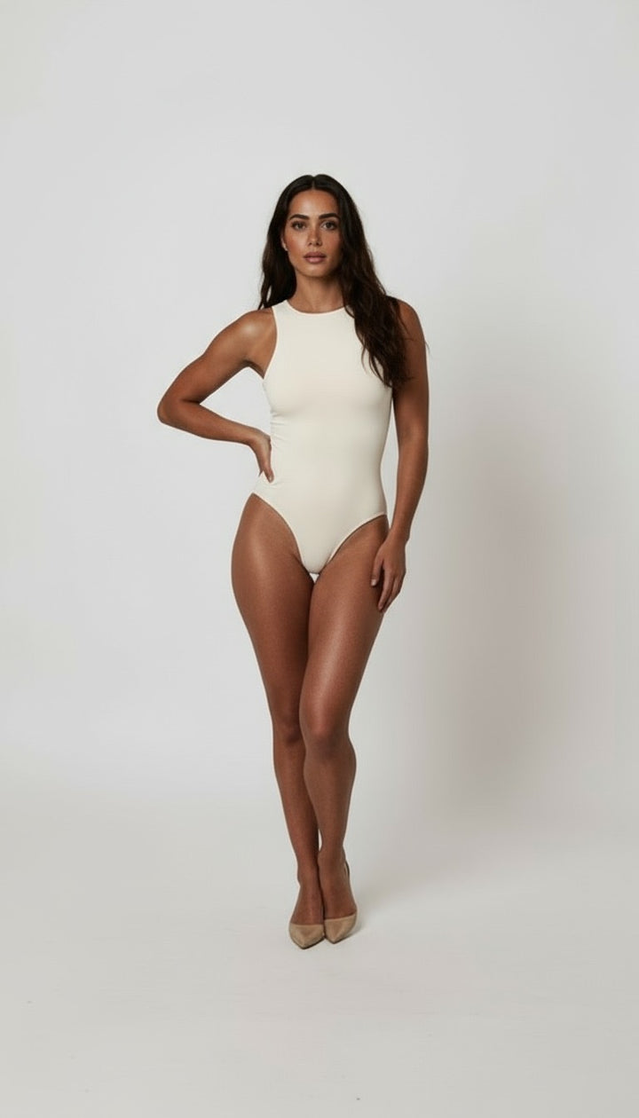 Este body de manga siza con cuello redondo ha sido confeccionado con tela doble en la parte delantera y posterior, brindando una sensación de firmeza y un acabado impecable que realza la silueta.