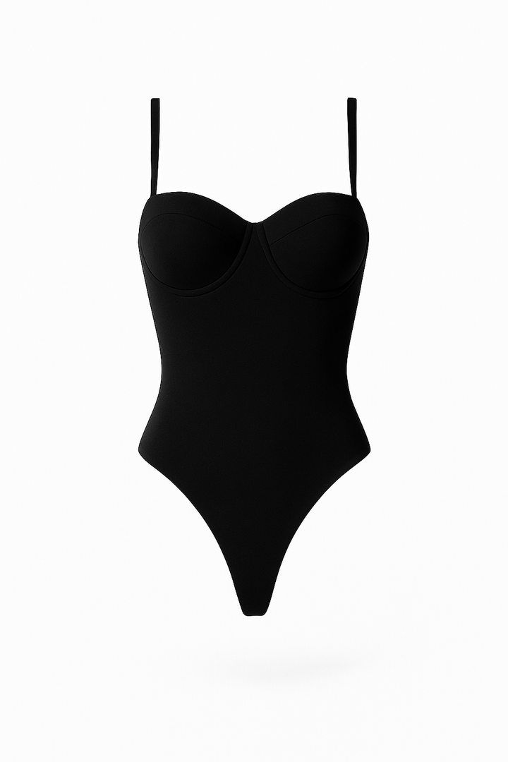 Hermoso Body con copa, varilla con refuerzo y cargaderas ajustables, todos nuestros bodys cuentan con broche en la parte inferior para graduar. El material de este body es Licra Nylon un material muy suave al tacto.